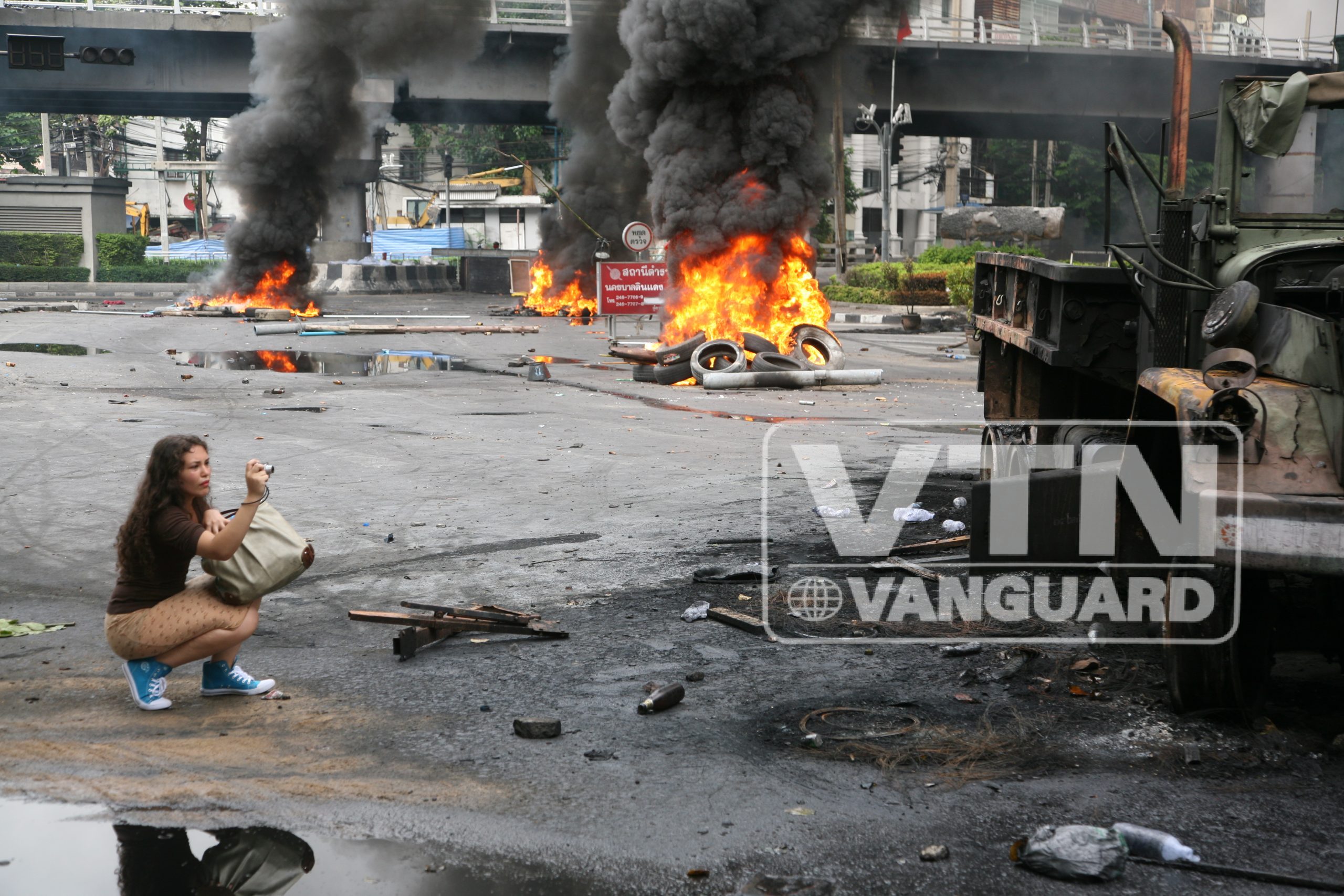 THAILAND RED SHIRTS REVOLT – They shut down the centre of Bangkok with barricades and petrol bombs in protest at inequality and lack of democracy. A Unique set of photographs showing the struggle and the destruction.